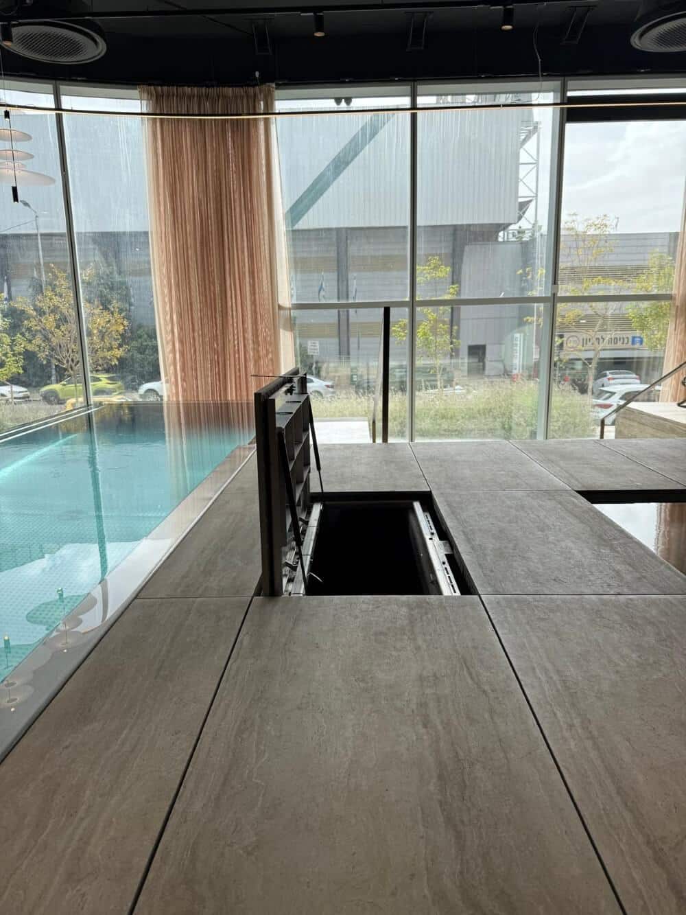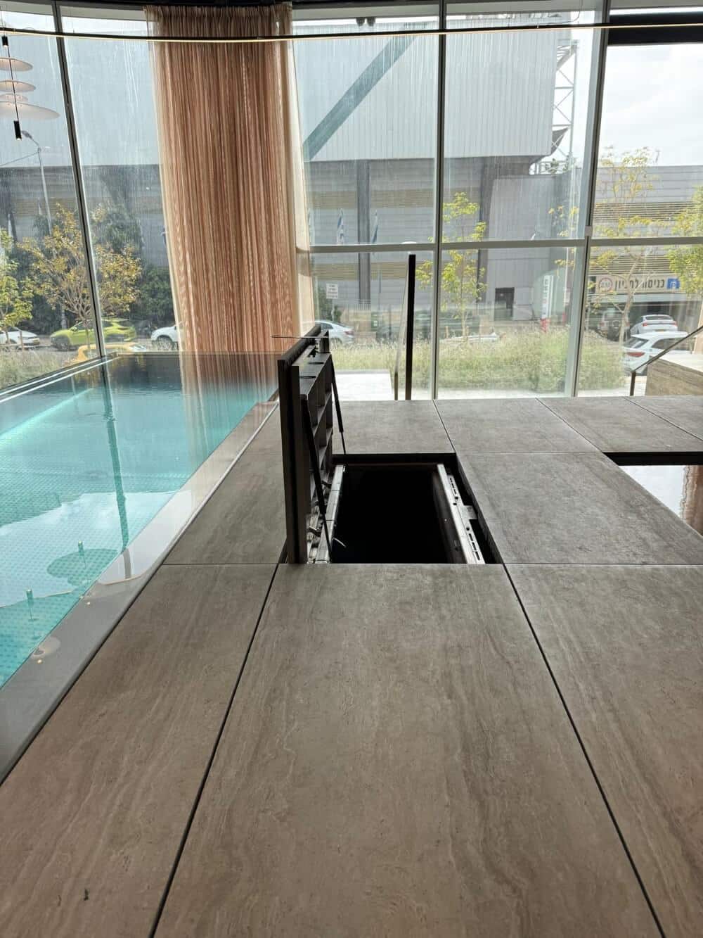 מכסה פרימיום של  נפטון ללא מסגרת מתכת היקפית ,למראה מושלם לקווי ריצוף